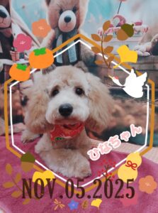 今日のトリミング 2025年11月05日 11月5日 ハルちゃん ひなちゃん 心桜ちゃん ラブちゃん ニフラーちゃん 今日もみんなとってもお利口さんでした✨ また会える日を楽しみにお待ちしております😊🌻